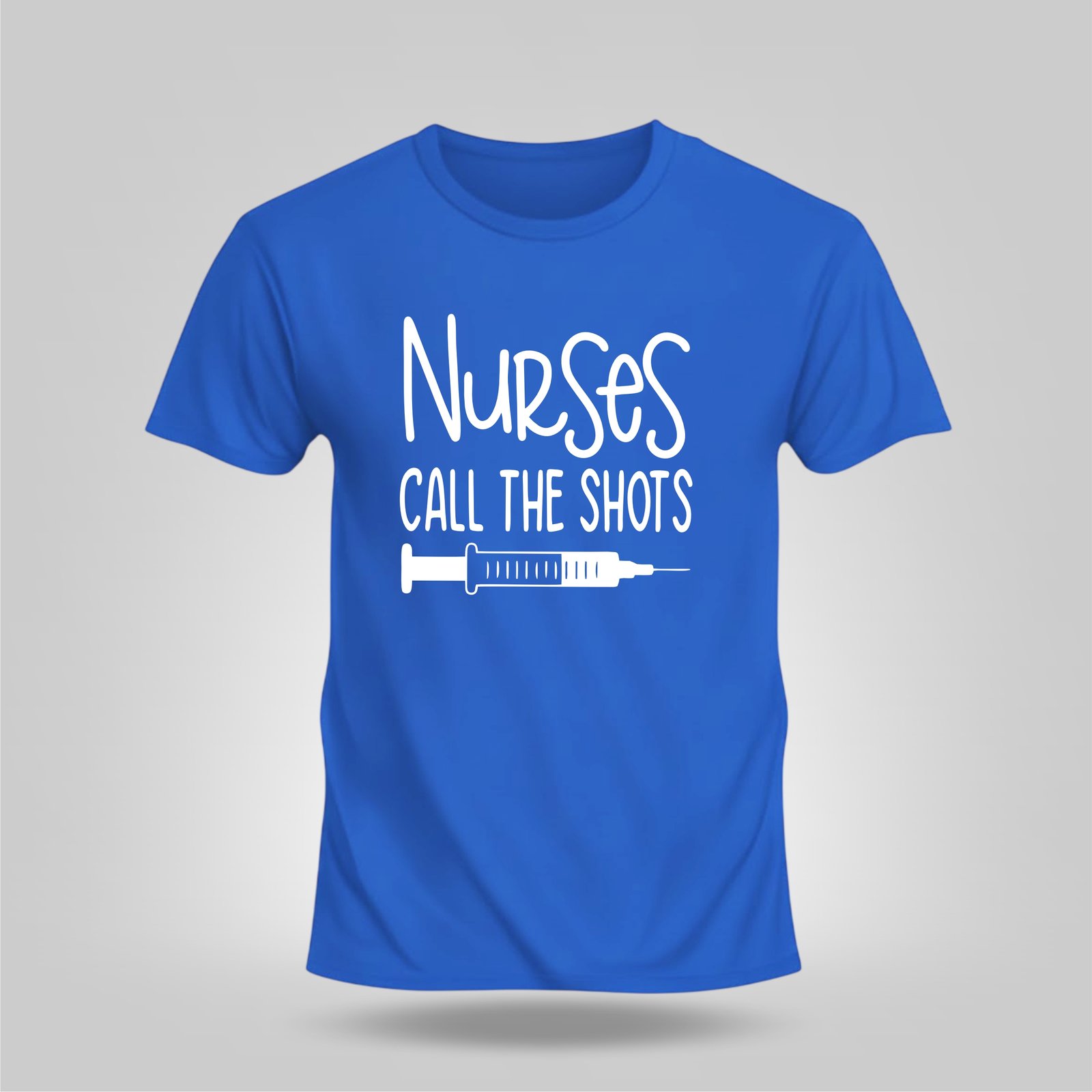 Quote: Features the bold and humorous phrase “Nurses Call the Shot” printed in a contrasting white, distressed-style font.
